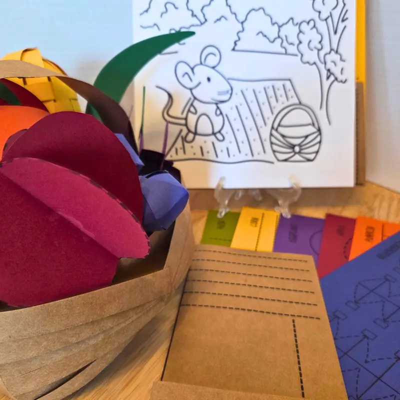 Meet Alfred and join him on a crafty adventure to build your very own picnic basket—packed with cheerful 3D paper produce! This kit comes with sturdy cardstock and easy instructions to help you create charming items like corn, blueberries, apples, pumpkins, and more. Explore how flat paper becomes dimensional art while boosting fine motor skills and creative confidence. Perfect for crafters 10+, rainy days, classrooms, or family art nights. Don’t forget to use your leftover paper scraps to invent brand-new foods!